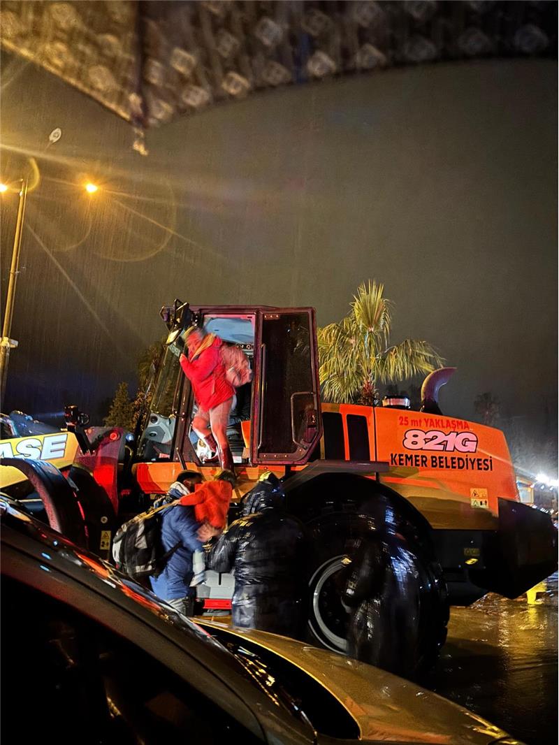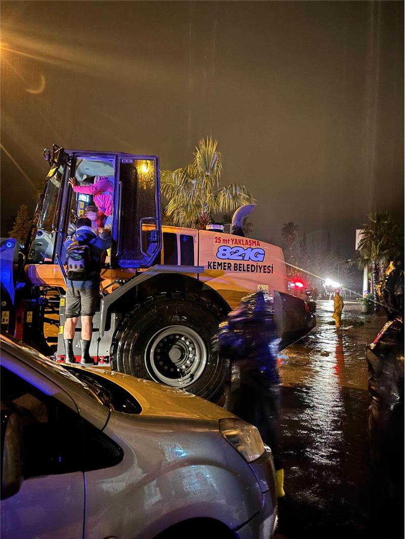 Başkan Topaloğlu, yaptığı açıklamada, "Kemer'de şiddetli yağış nedeniyle Çamyuva mahallemizde bir ailemiz mahsur kaldı. Belediyemiz ve Jandarma ekiplerimizin ortaklaşa çalışması ile kepçe yardımıyla ailemizi kurtardık. Ailemizi mahallemizde bir pansiyona yerleştirdik ve tüm ihtiyaçlarını karşılıyoruz. Belediye ekiplerimiz teyakkuz halinde sahada olmaya devam ediyor." dedi.