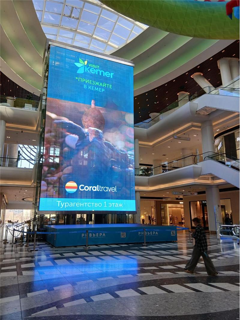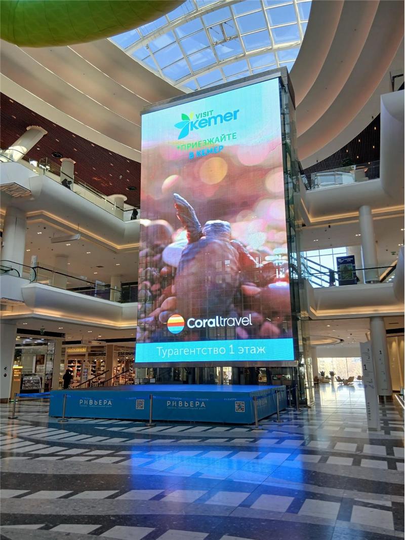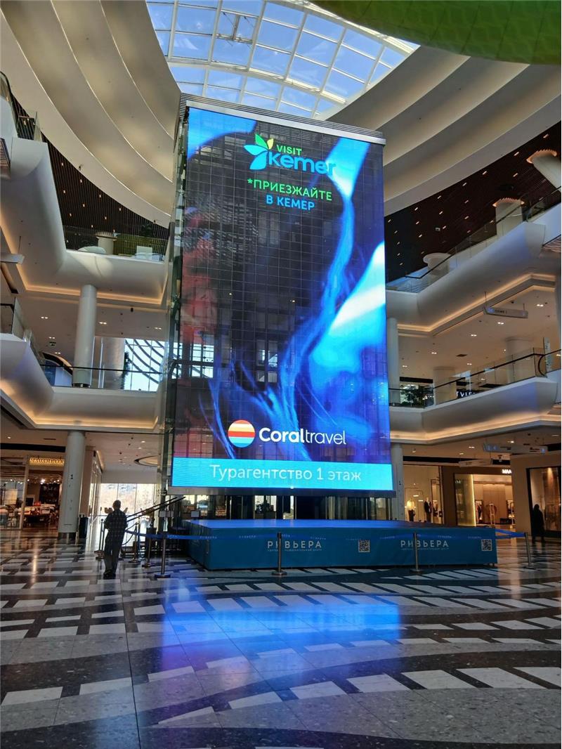 Geçtiğimiz yıl Moskova'da dev ekranlarda yayınlanan Kemer reklamları bu yıla da damgasını vurdu. Moskova'nın işlek caddeleri ve büyük alışveriş merkezlerinde yer alan dev ekranlarda Kemer'in tanıtım videoları yayınlanıyor.