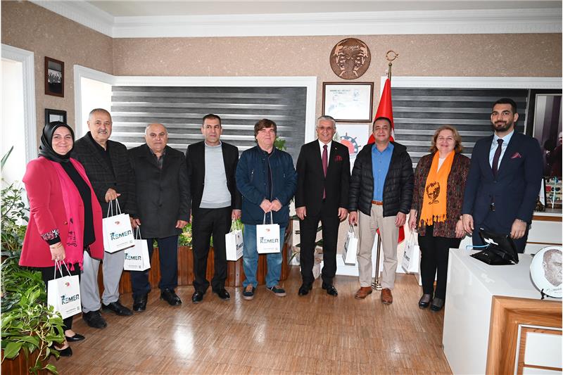 Kemer bölgesindeki muhtarlar, Kemer Belediye Başkanı Necati Topaloğlu ve Kemer Belediye Başkan Vekili Cansın Efir'i ziyaret ederek yeni yıllarını kutladı.