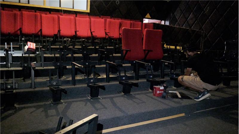 Kemer Belediye Başkanı Necati Topaloğlu'nun Kemer Belediyesi Kültür Salonu'nun hem sinema hem de tiyatro salonu olarak kullanılacağının müjdesini vermesinden sonra başlayan çalışmalar kapsamında salonun koltukları döşeniyor.